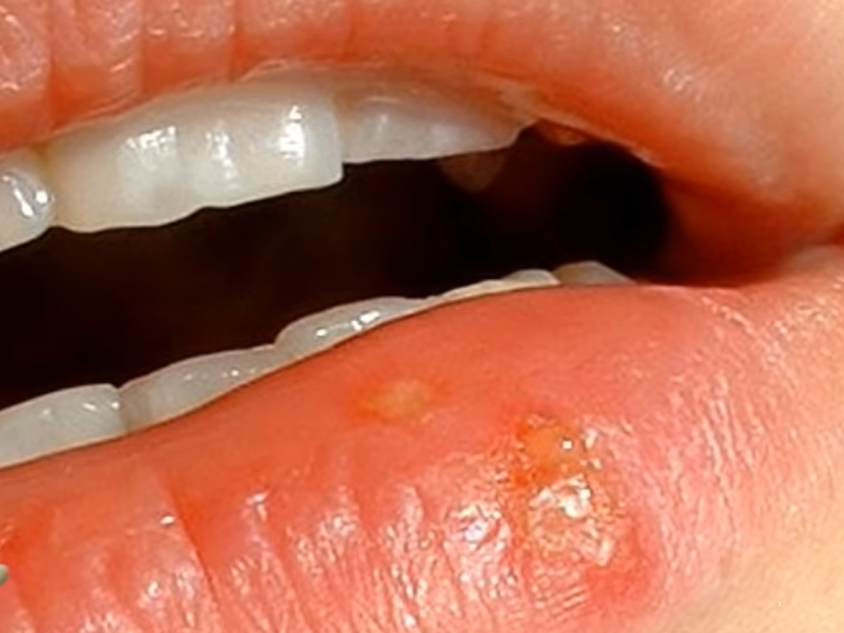 Nerijetko herpetični mjehurići izostaju, a umjesto njih mogu se primijetiti sitne pukotine (tzv. ragade) uz blagu nadraženost i svrbež. Bez obzira na to što nije došlo do razvoja mjehurića, osoba je zarazna za druge.