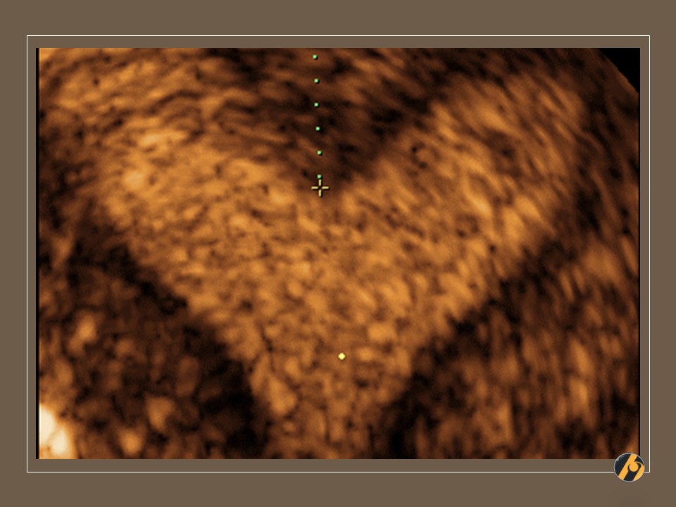 Ultrazvučna slika predstavlja 3D multiplanarni prikaz maternične šupljine i rekonstrukcija njenog izgleda, pri čemu se uočava duboki septum maternice koji seže u donji uterini segment, gotovo do samog cerviksa uz aplaniran / zaravnjen fundus maternice. Nužna je operativna histeroskopija i resekcija septuma prije planiranja trudnoće, pošto su češći spontani pobačaji i prijevremeni porod.