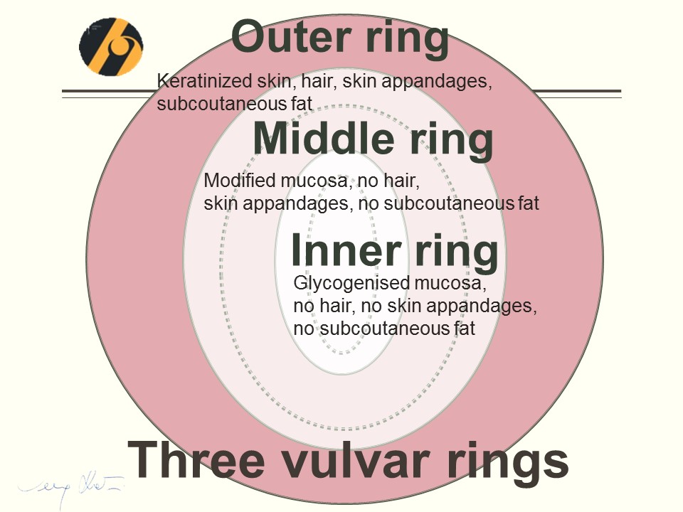 SREDNJI PRSTEN VULVE (Middle vulvar ring) – klitoralna komisura, interlabijalni sulkusi, male labije i stražnja komisura.