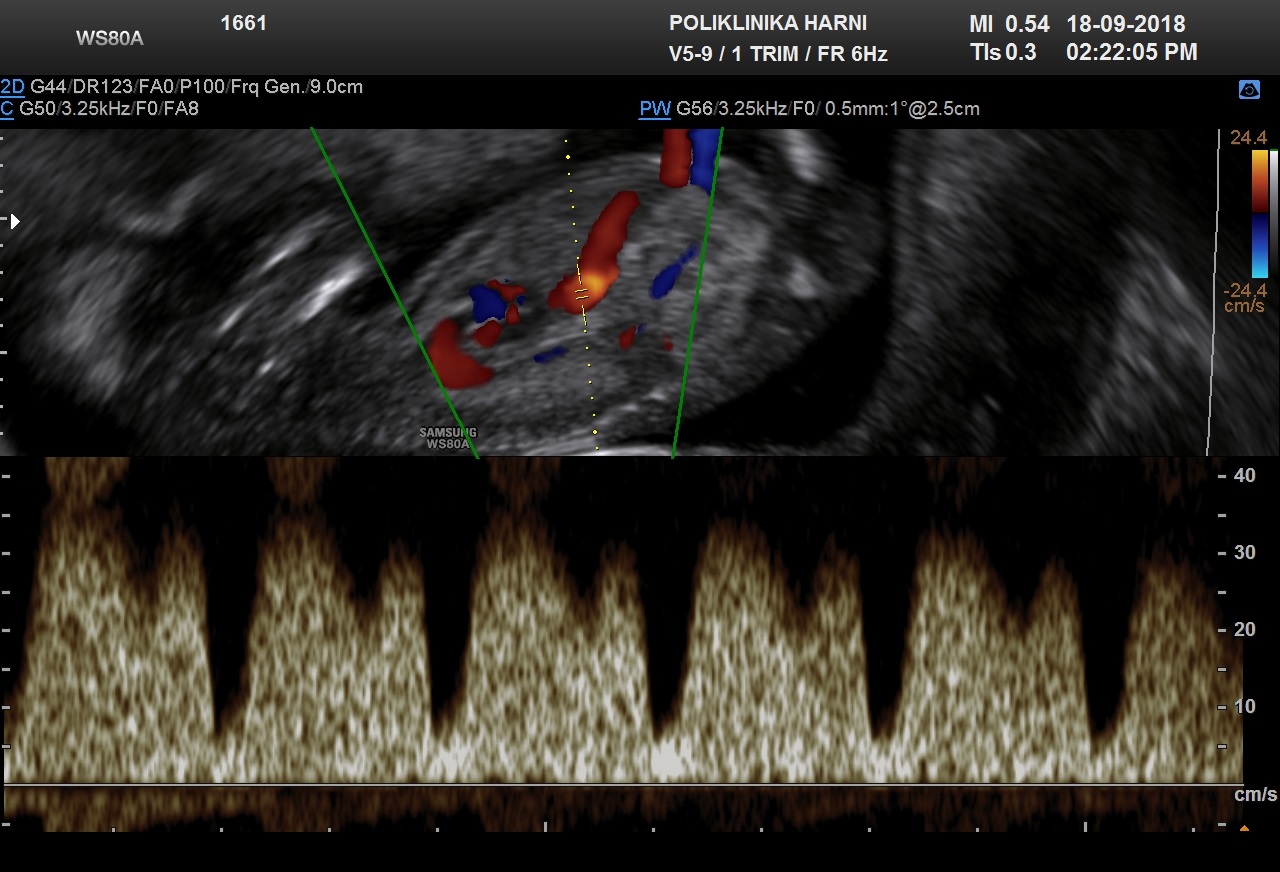 Duktus venozus krvna je žila koja nastaje u 6. tjednu trudnoće nakon obliteracije kompletne desne umbilikalne vene, kranijalnog dijela lijeve umbilikalne vene, lijeve žumanjčane vene i dijela jetrenih anastomoza. Ova krvna žila postaje poveznica - shunt između lijeve umbilikalne vene i desnog hepatokardinalnog kanala. Protok kroz duktus venozus ima karakterističnu krivulju na doplerskom sonogramu: prvi val je brzi pozitivni protok za vrijeme sistole ventrikula, drugi je nešto manje brzine za vrijeme dijastole ventrikula, a treći je i dalje pozitivan protok tijekom atrijske kontrakcije. Ultrazvučno možemo prepoznati povećani otpor u duktusu venozusu kao i izostanak dijastoličkog protoka ili povratni protok u vrijeme kontrakcije atrija, te veće razlike između sistole i dijastole.